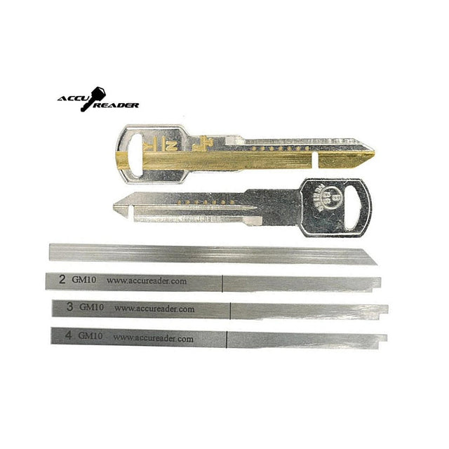 AccuReader for the GM 10 cut keyway locks. Designed to read actual depths for each space in GM 10-cut locks.