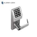Alarm Lock's most popular keypad door lock – now with more codes & power. More codes with up to 100 3 to 5 digit codes, 1 master, 10 managers, 90 basic users, and 3 one-time service codes. 5AA battery operated; 175,000 cycles, typ. For outdoors, specify WP Weatherproof models -31˚ to +151˚F (-35˚ to +66˚C).