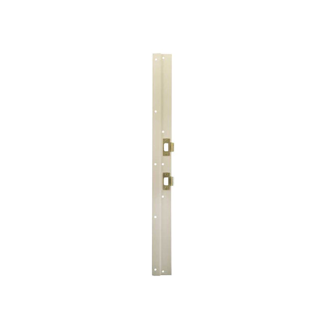 The Jamb Jacket is to be used with a cylindrical lock or lever with a deadbolt mounted above. The double strike model has the strike plates mounted with a 5-1/2" center to center spacing. It is designed for a 1-3/4" jamb and is mounted with 10 #10 screws 2-1/2" long. The Jamb Jacket is made from sheet metal approximately 1/16 inches thick and finished in White Powdercoat.