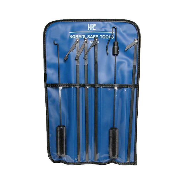 The HPC Safe Opening Tool Kit is a collection of six tools designed for use on safe locks after burglary has been attempted. Entering through the existing spindle hole, the ends of the tools flip open and allow you to work from the inside of the lock. These tools are specifically designed to recreate correct combination input by allowing you to deactivate relocking mechanisms and draw back bolts. The ends of the tools are like little fingers and are designed to manipulate the inner workings of many safe locks. With the HPC Safe Opening Kit you can quickly and easily open LaGard 1800 and 2100, Mosler 302 and 402, and many S&G safe locks. This kit comes complete with 6 tools and instructions in a handy roll-up case for convenient storage.