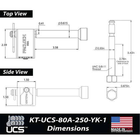 PACLOCK KT-UCS-80A-250-YK-1 Series Locking Hitch Pin Kit for 2", 2.5", 3" and Yakima Bike Racks
