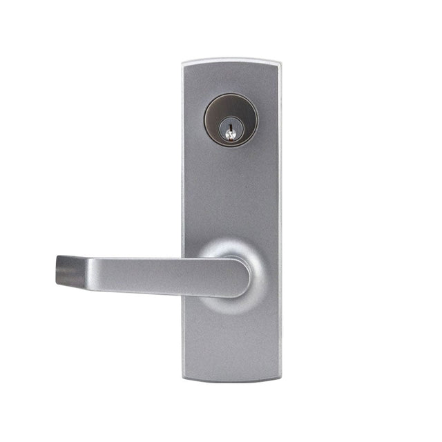 The KeyInCode Mechanical Escutcheon Trim is designed for use with KIC3000 Series Exit Devices, providing secure keyed access from the exterior. Available in Entry or Storeroom lever functions, this trim features hardened steel construction, a 1-1/8" mortise cylinder prep, and through-bolt installation for added durability.
