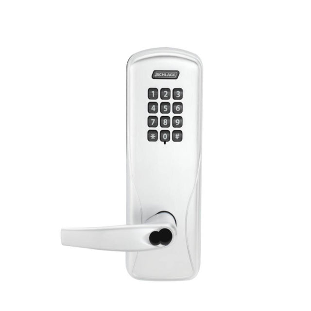 Schlage - CO-100 - Standalone Electronic Mortise Lock Classroom Function with 1-1/4" Square Corner and 1-3/16" ANSI Strike - Keypad Reader - Athens Lever - SFIC - 625 (Bright Chrome Finish)