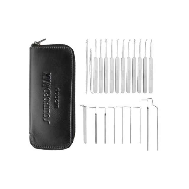 The M2000 MAX High Yield Lock Pick Set is SouthOrd's premier lock picking kit, engineered for professional locksmiths and serious lock sport enthusiasts. Featuring high-yield stainless steel picks with rivetless, smooth-finish handles, the M2000 delivers maximum durability, precision, and comfort. This 22-piece set includes a full range of picks and tension tools housed in a rugged, compact zippered case-making it a go-to choice for field use and daily practice